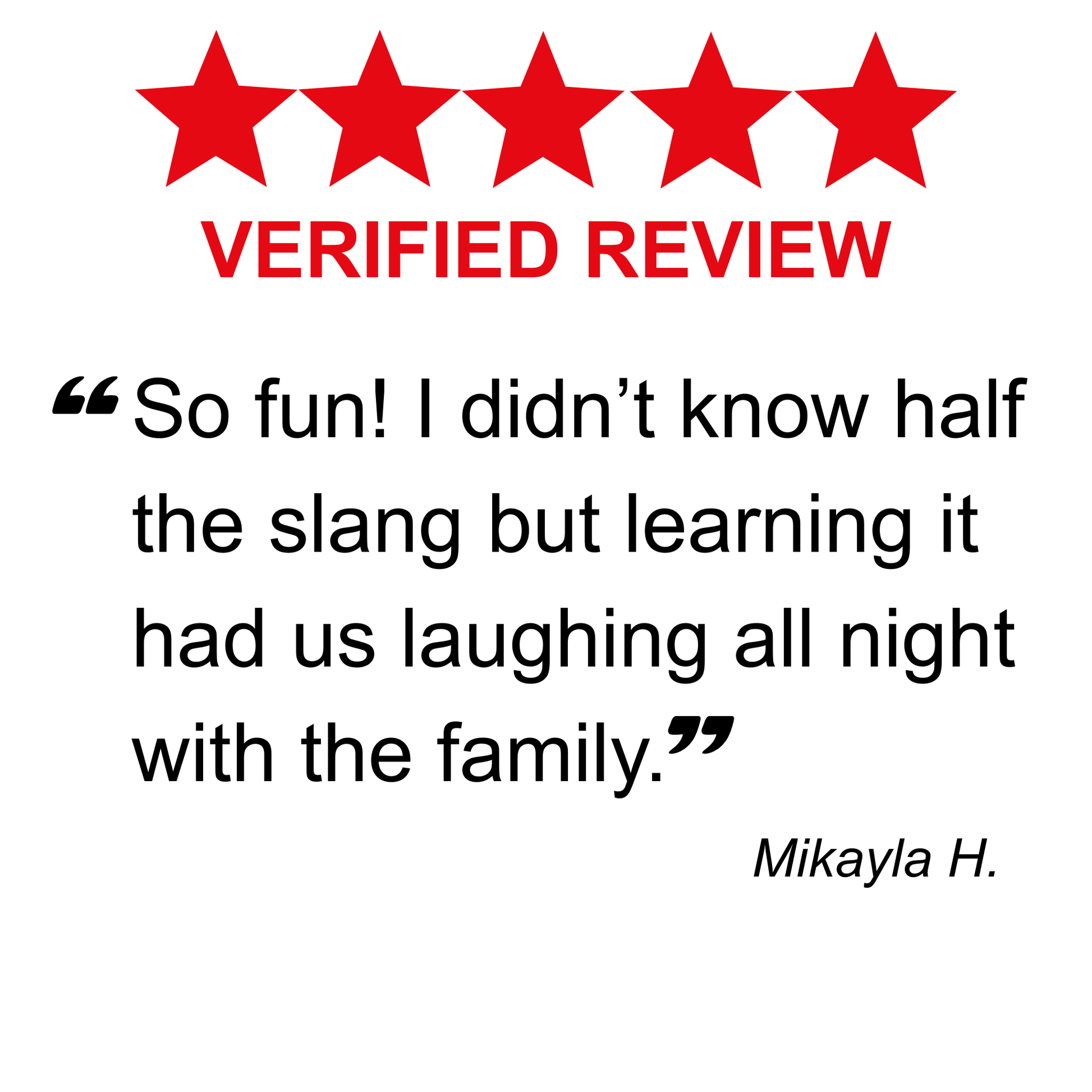 99 Black Slang Phrases is the hilarious party game that celebrates culture, language, and quick wit. Take turns reading black slang phrases and guessing the caucasian way to say them...earning points and bragging rights. Perfect for game nights, cookouts, or road trips. It is the perfect gift for ANYONE and EVERYONE who is interested in black slang.