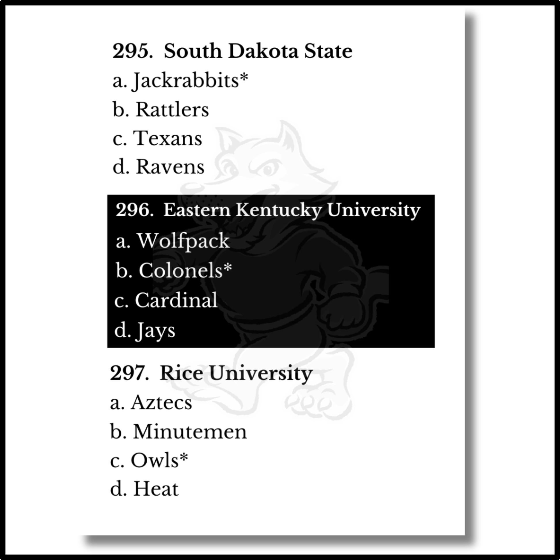 šššš šš šš šššš š-šš-š ā Either way the trivia guessing game is simple. Draw a card and guess the mascot of the university to earn points!